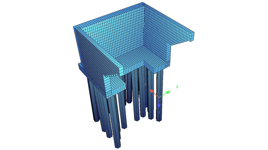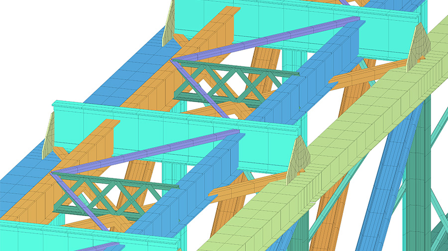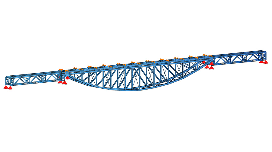 - Zaprojektowano obiekt o rozpiętościach przęseł 2×16,56 m i konstrukcji płytowej (dźwigarobeton)